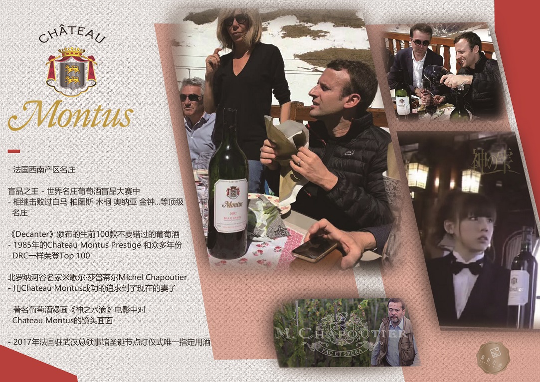 2.2024年5月初,法国总统马克龙完成了一系列最高规格的接待活动,其中最鼓舞人心的一项:喝酒!要知道,法国历任总统都是葡萄酒的忠实粉丝!马克龙可能是最夸张的,比如他和Chateau Montus孟图酒庄结缘就是在多年前。如今孟图酒庄特酿“La Tyre”再度被法国总统当做礼物送给主席。值得一提的是,这款酒也是这次主席对法国的国事访问中,马克龙总统赠送的礼单中出现的唯一一款葡萄酒。在送上这款酒作为礼物时马克龙说:“C'est le meilleur”,意指这是酒庄最好的一款酒。(来源:法国南部 奥克塔尼大区)