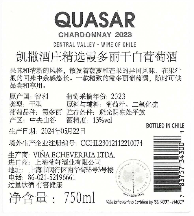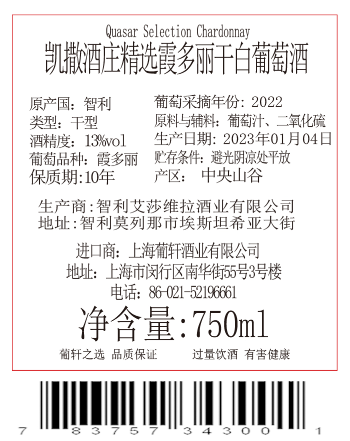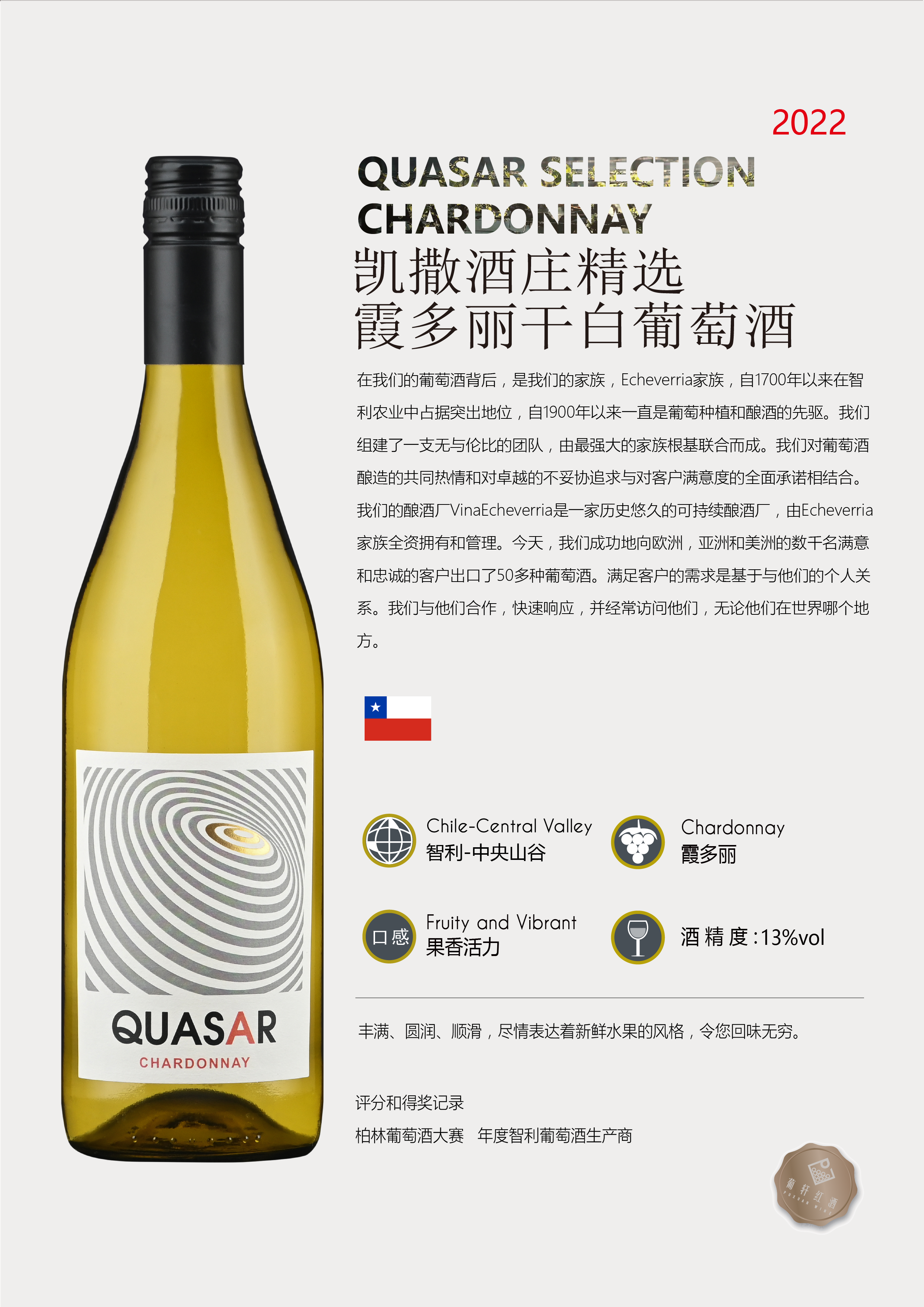 品饮记录 | 具有新鲜水果的风格, 异国情调菠萝和芒果的香味,挥之不去回味的果香。一支精致的凯撒霞多丽随时可以品尝并享有! |