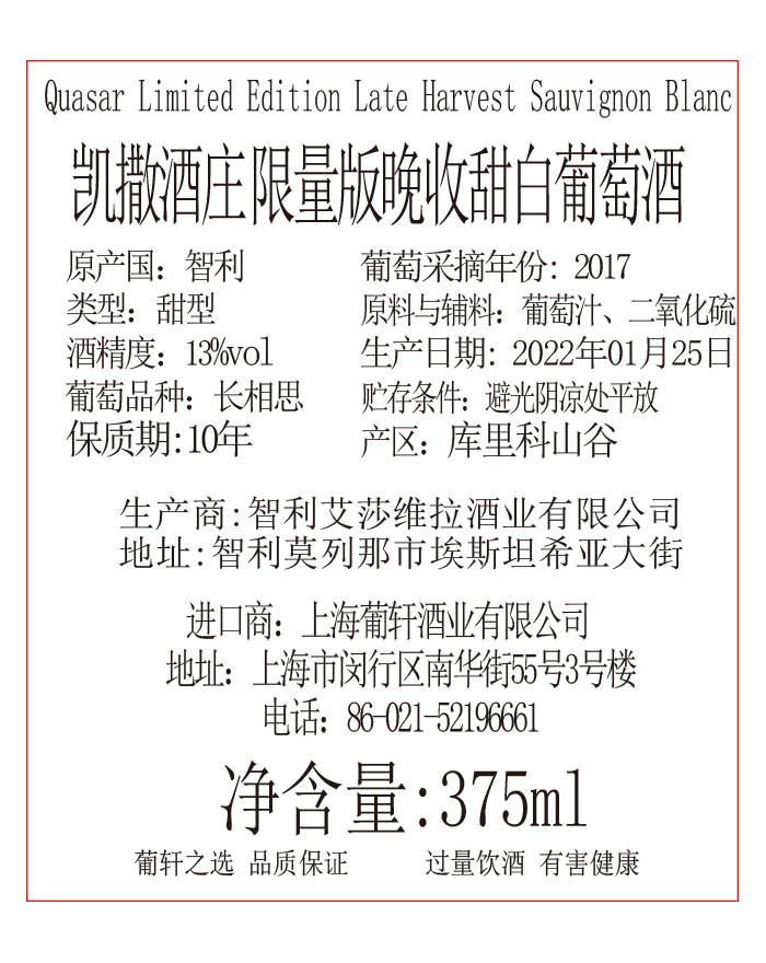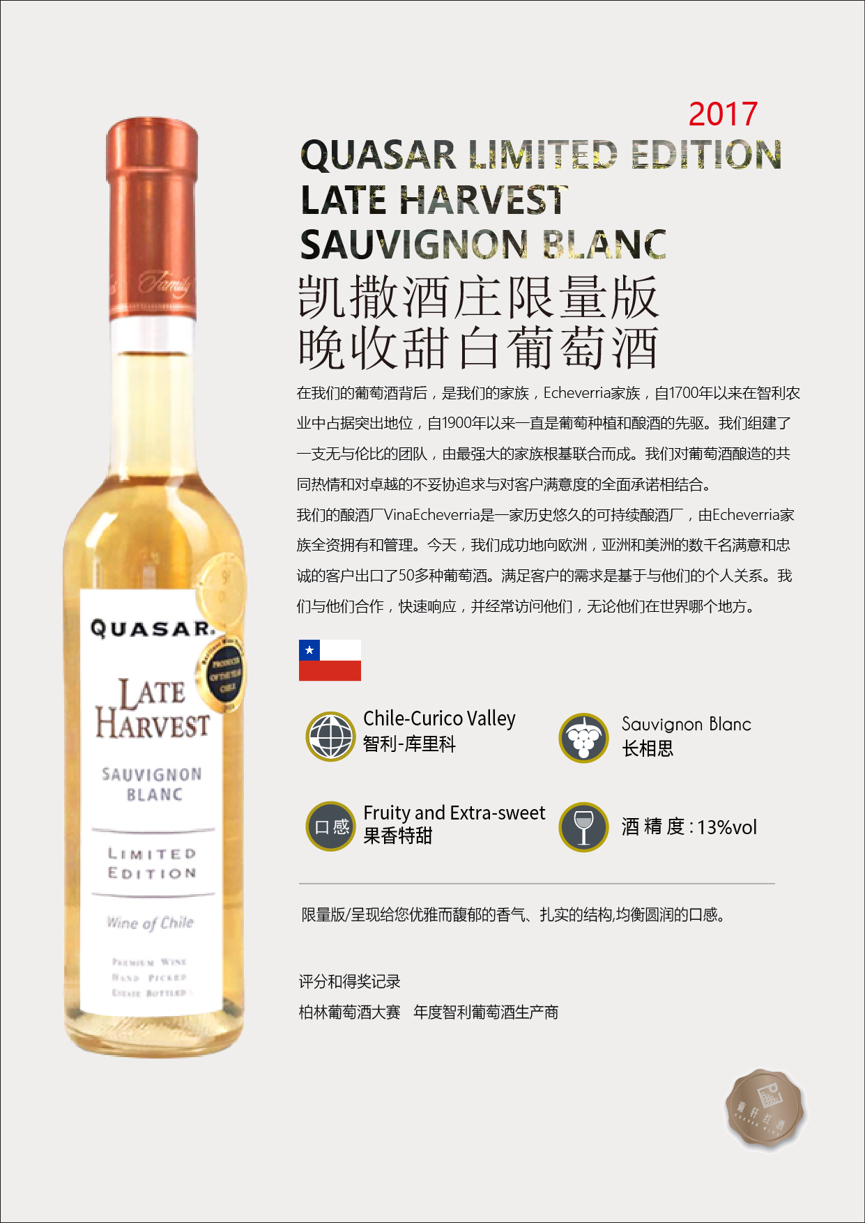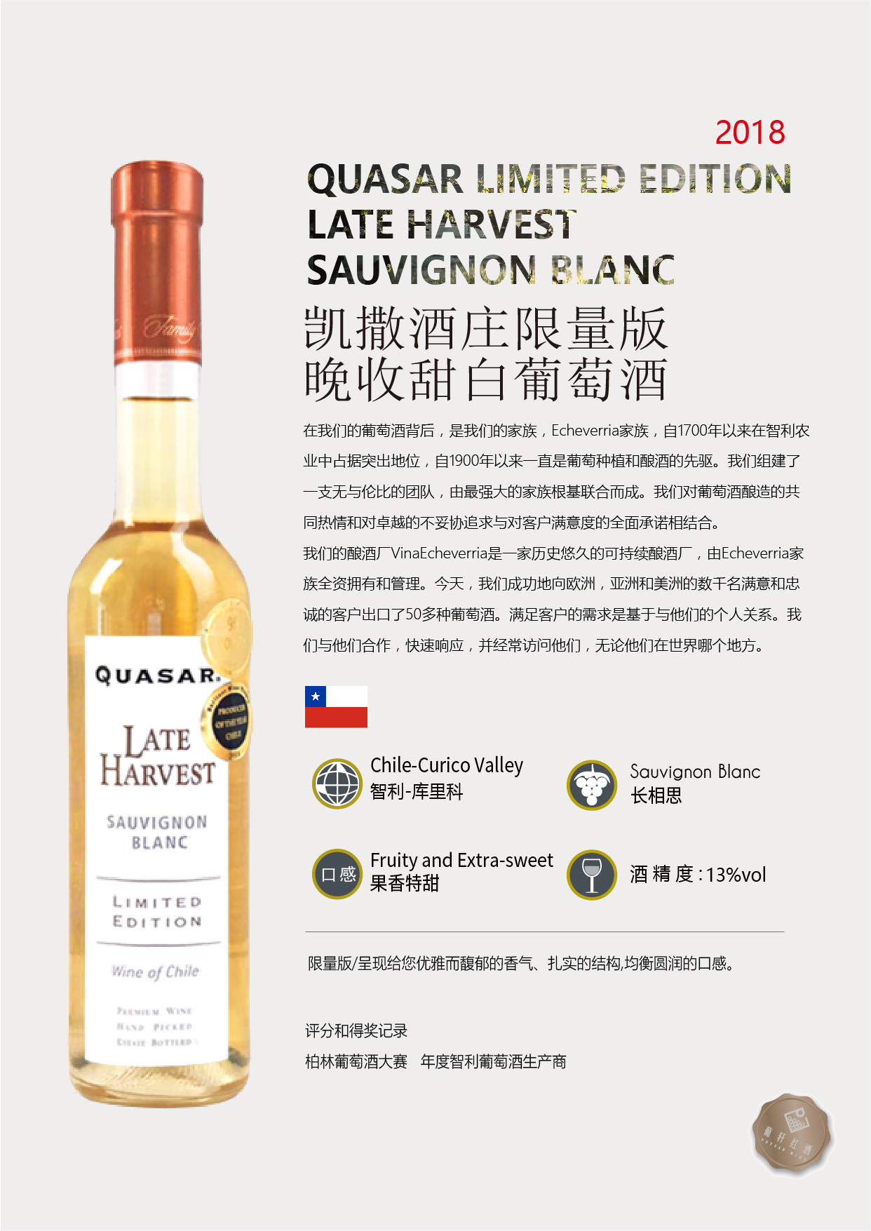 橡木桶陈酿时间 | 葡萄采摘年份 | 2018/2017 | 产品类型 | 甜白葡萄酒 | |