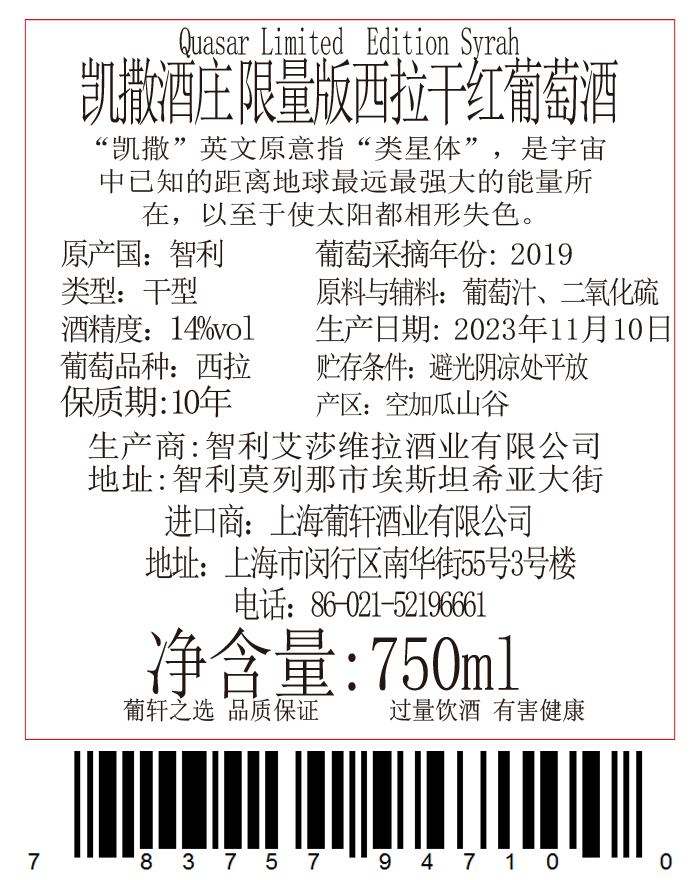 QUASAR LIMITED EDITION Cabernet Sauvignon