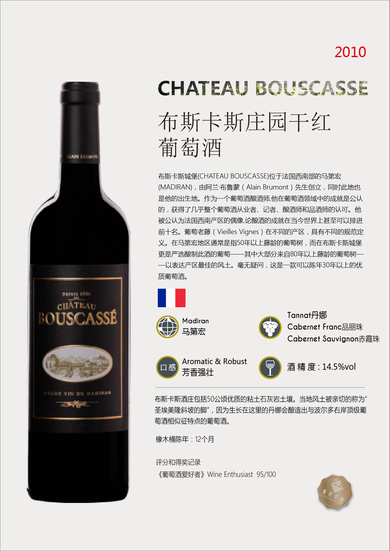 酒体颜色 | 包装规格 | 6支/纸箱 | 口感 | 芳香,强壮 | |