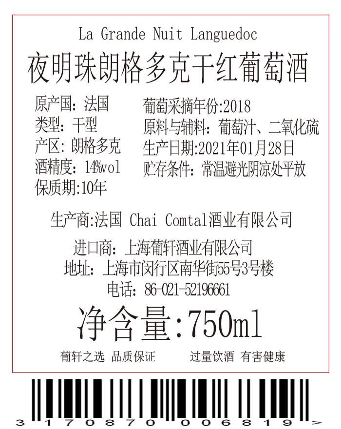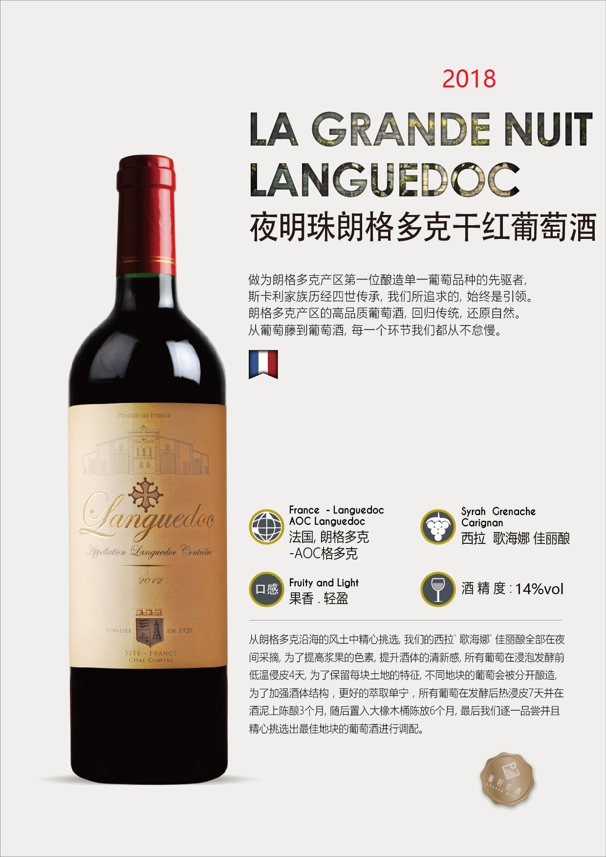 葡萄品种 | 西拉、歌海娜、佳丽酿 | 酒精度 | 14% | 酒体 | 醇厚 |