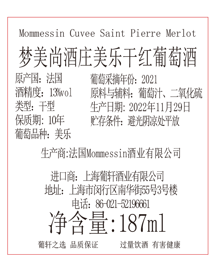 葡萄品种 | 美乐Merlot | 酒精度 | 13% | 酒体 | 顺滑,圆润 |