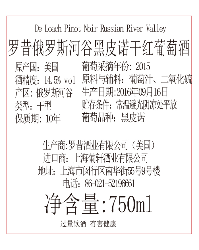 葡萄品种 | 黑皮诺 | 酒精度 | 14.5% | 酒体 | 中等 |