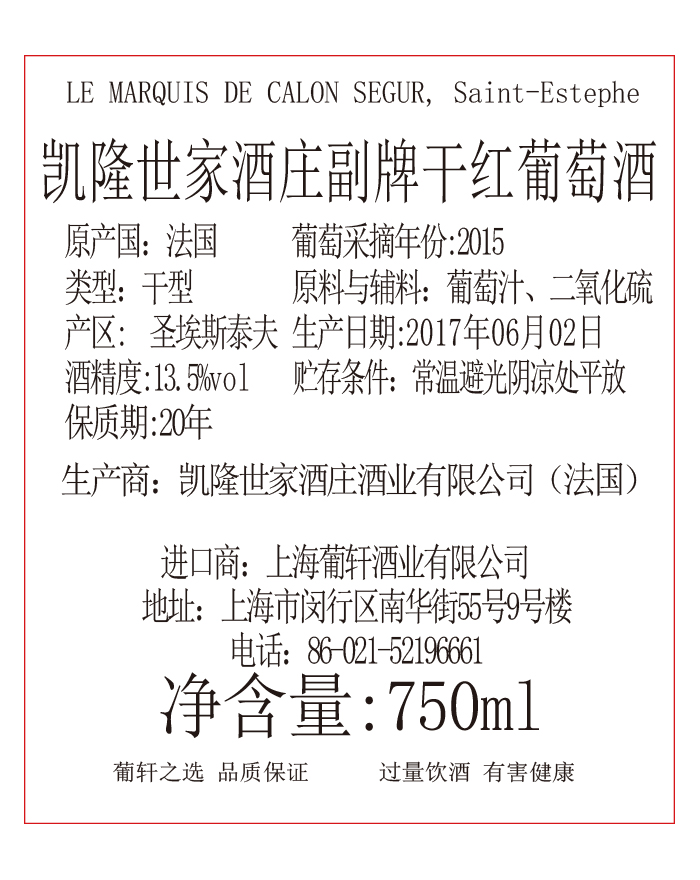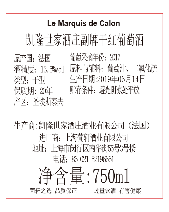 卖点 | 1855分级(The 1855 Classification)中位列三级庄。凯隆侯爵Marquis de Calon是酒庄的副牌酒 | 级别 | AOC | 酸度 | 中等 |