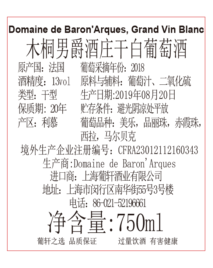 木桐男爵酒庄干红葡萄酒