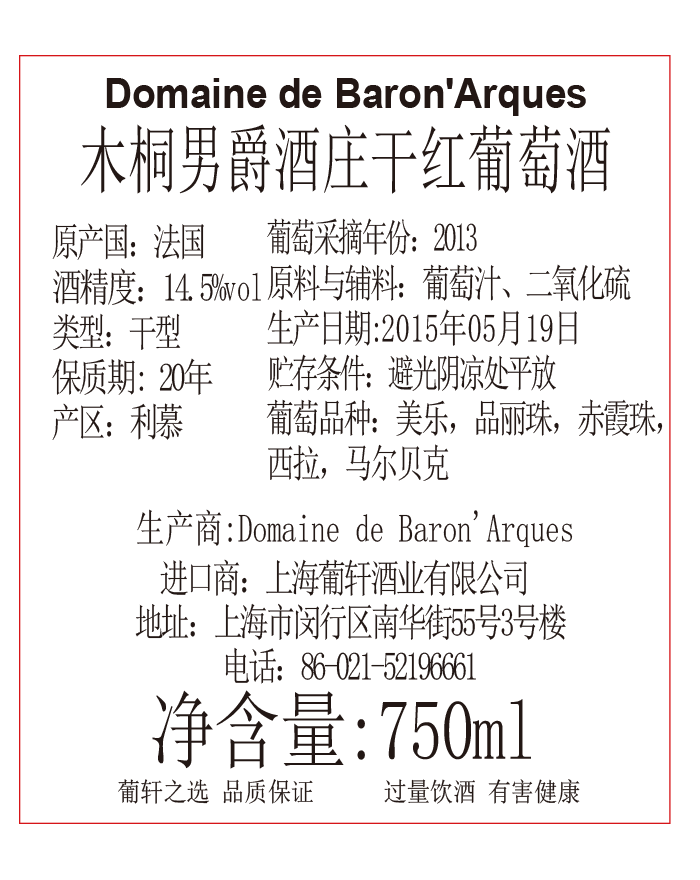葡萄品种 | 美乐53%、品丽珠23%、赤霞珠4%、 西拉12%、马尔贝克8% | 酒精度 | 14.5%/15% | 酒体 | 柔和、滑润 |