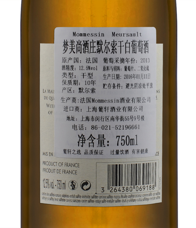 橡木桶陈酿时间 | 葡萄采摘年份 | 2013年 | 产品类型 | 干白葡萄酒 | |