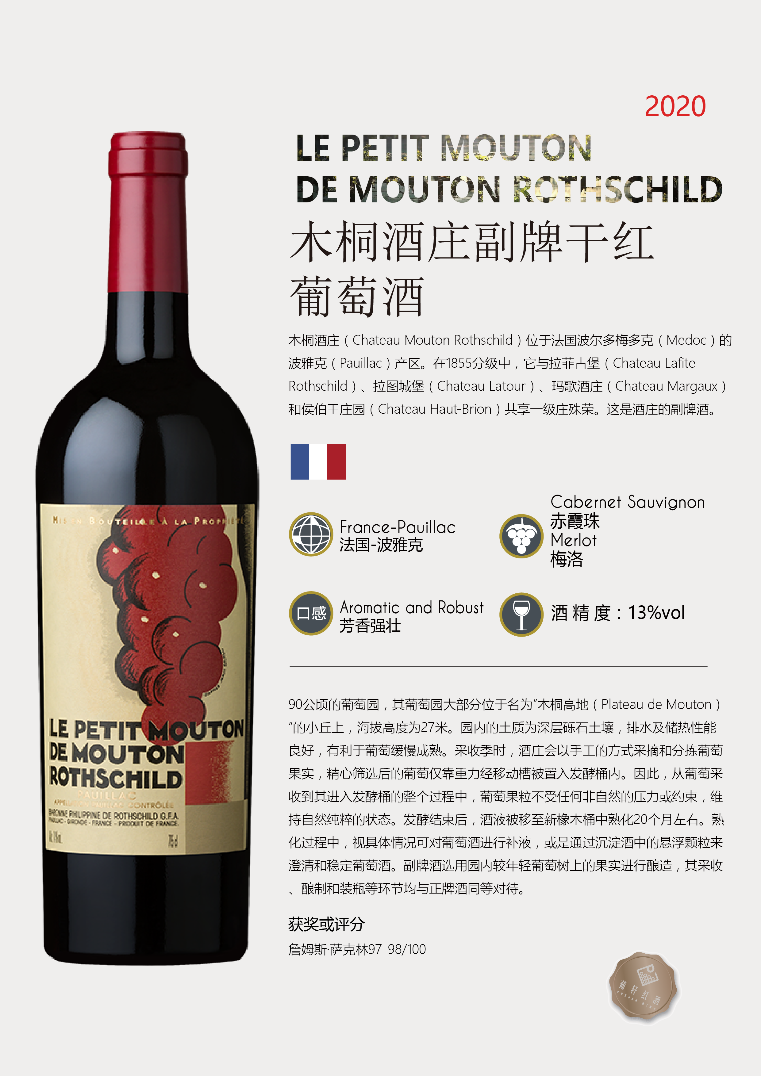 葡萄品种 | Cabernet Sauvignon 赤霞珠 Merlot 美乐 | 酒精度 | 13.5%/13% | 酒体 | 丰满 |
