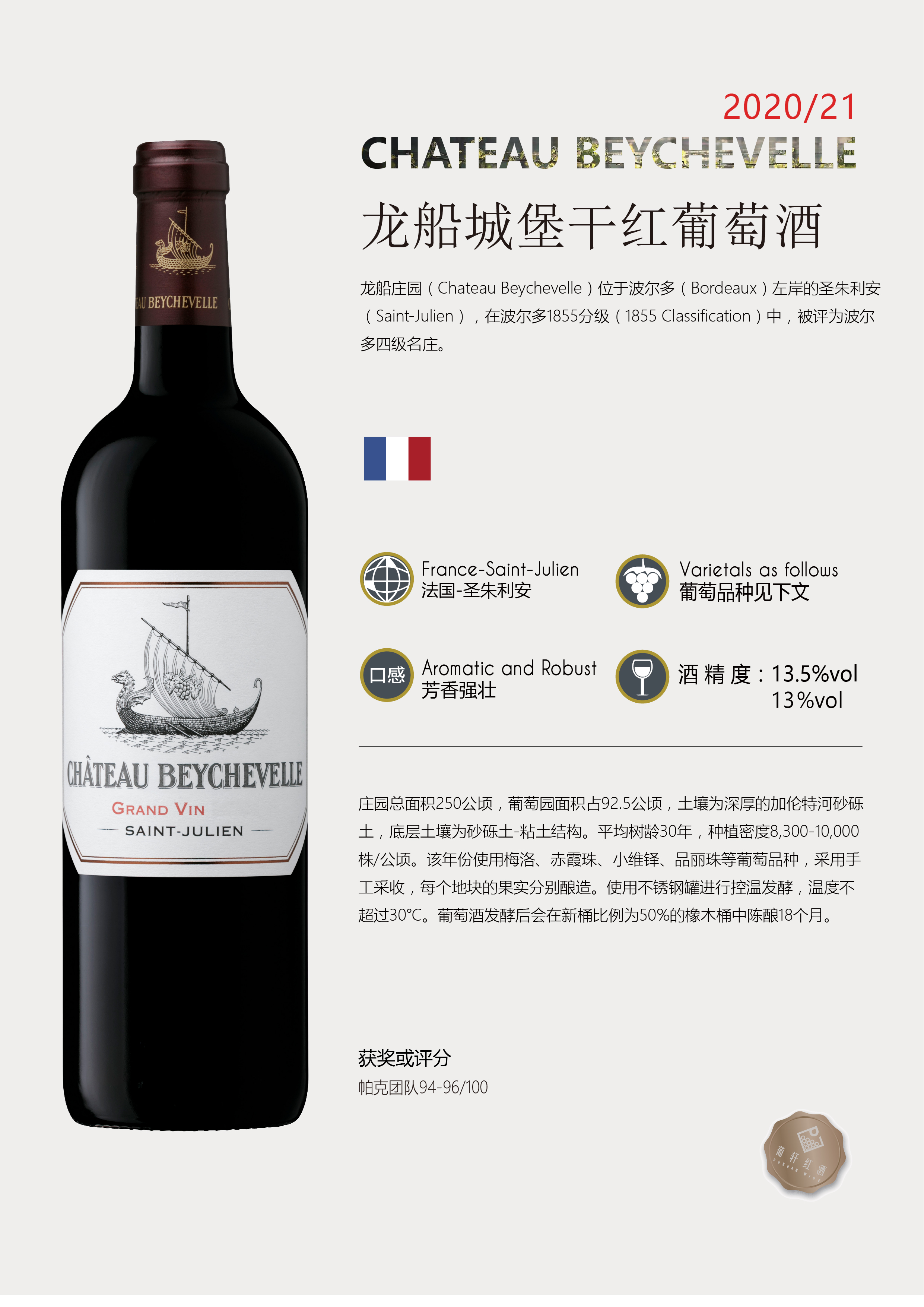 葡萄品种 | Merlot 美乐/Cabernet Sauvignon 赤霞珠/ Petit Verdot 小维而多/Cabernet Franc 品丽珠 | 酒精度 | 13.5% | 酒体 | 中等 |