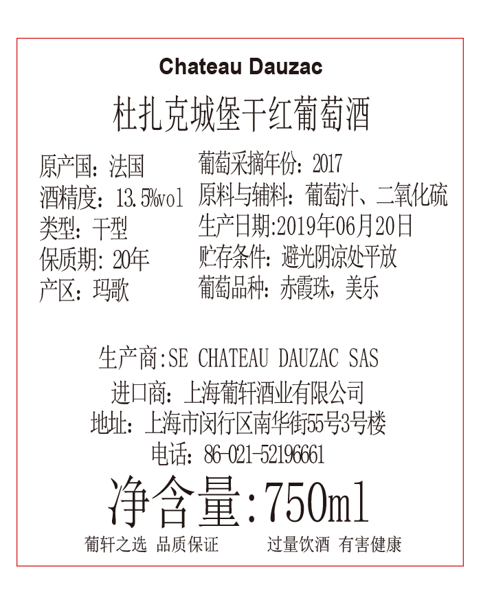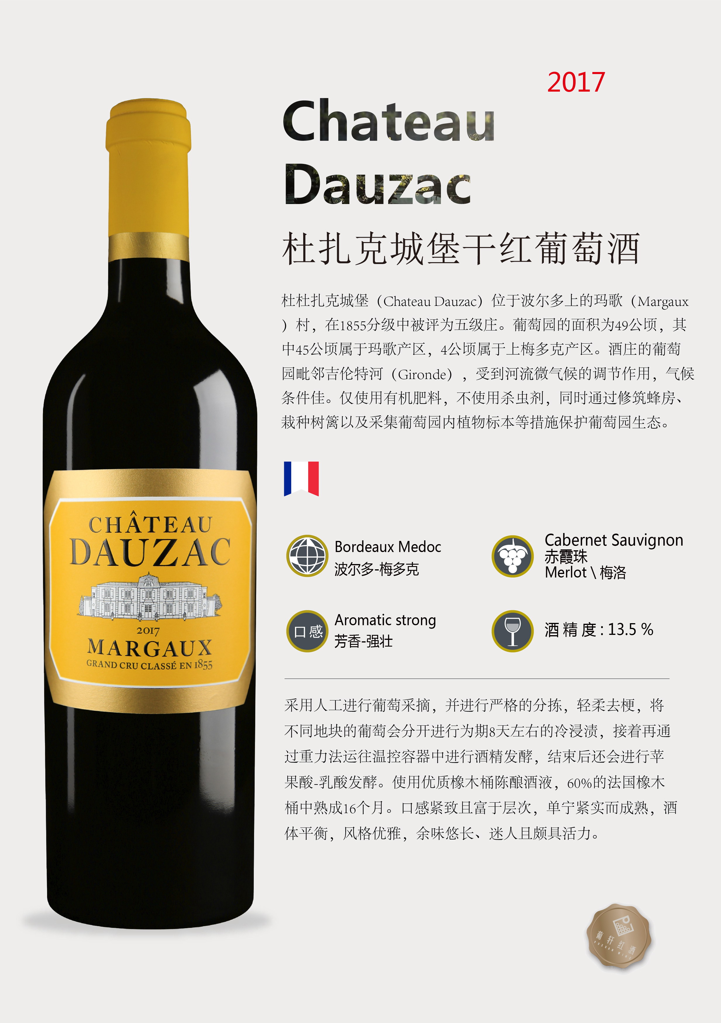 卖点 | 1855分级(1855 Classification)中被评为五级庄。 | 级别 | AOC | 酸度 | 中等 |