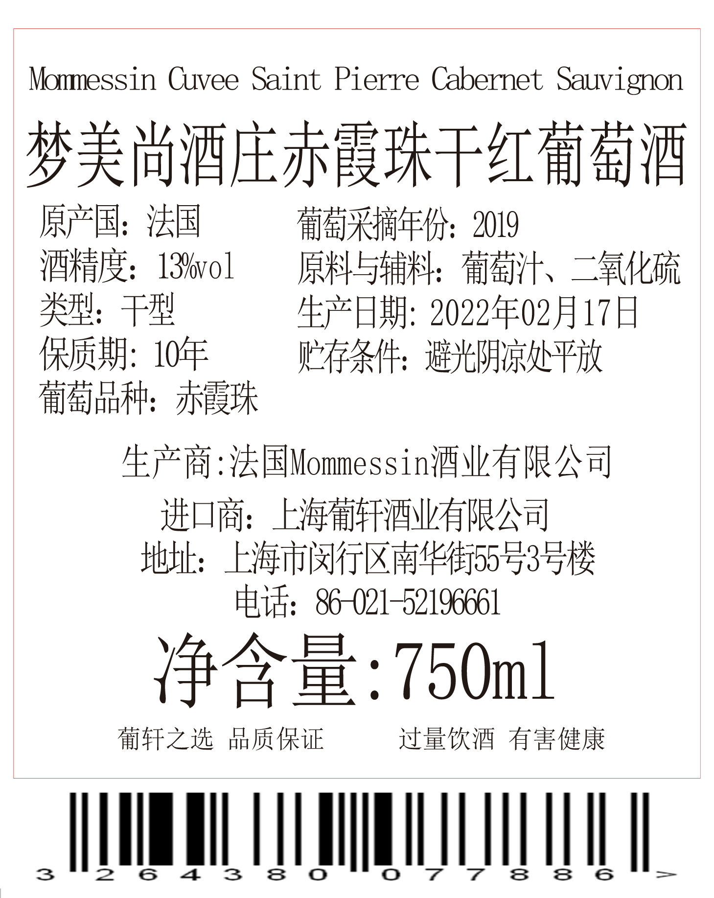 葡萄品种 | Cabernet Sauvignon 赤霞珠 | 酒精度 | 13% | 酒体 | 适中 |