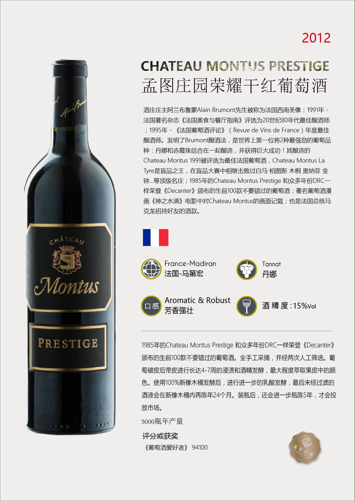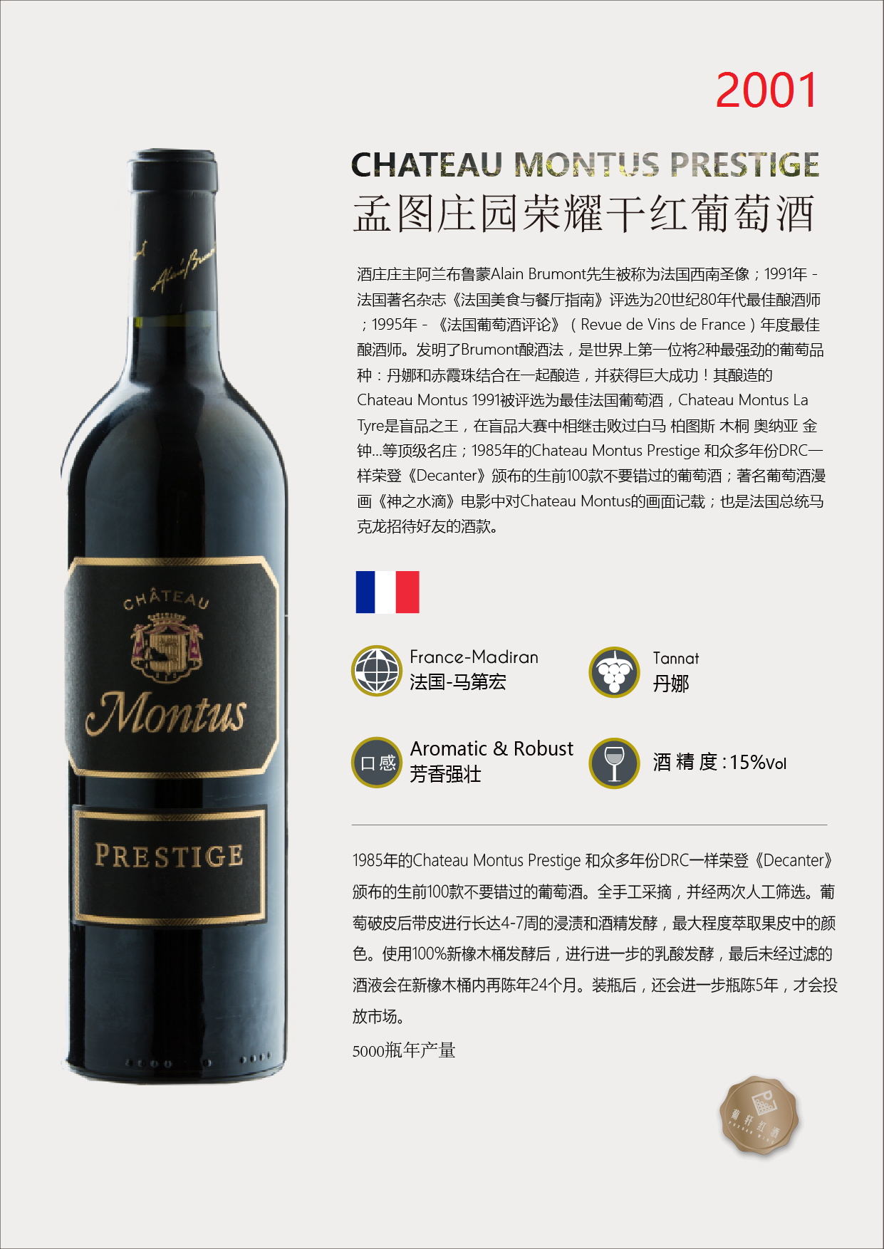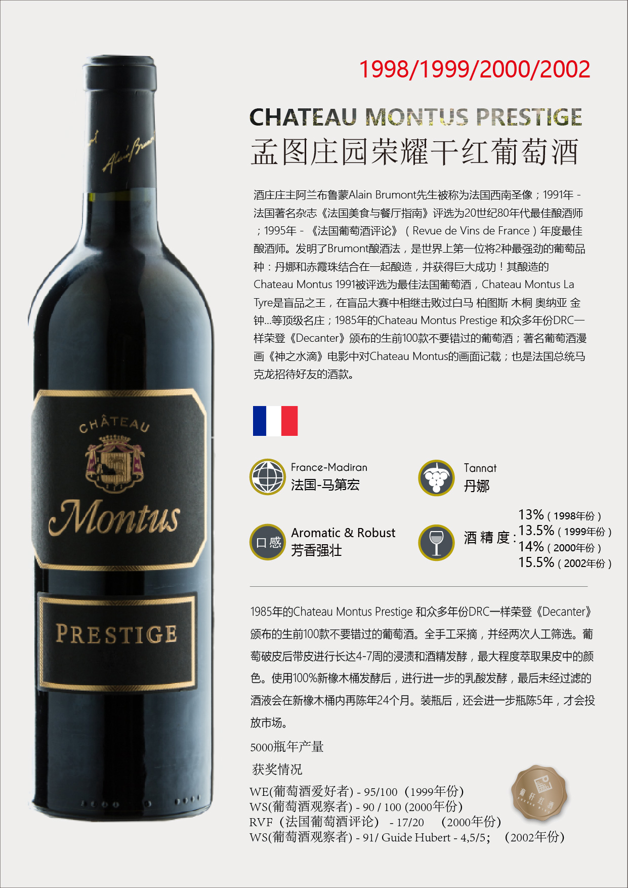 品饮记录 | 此酒呈红宝石色,具有非同寻常的特点,柔和又复杂多变。烟熏和可可的香气非常显著。是一款酒体丰满可长时间窖藏的高品质葡萄酒。 |