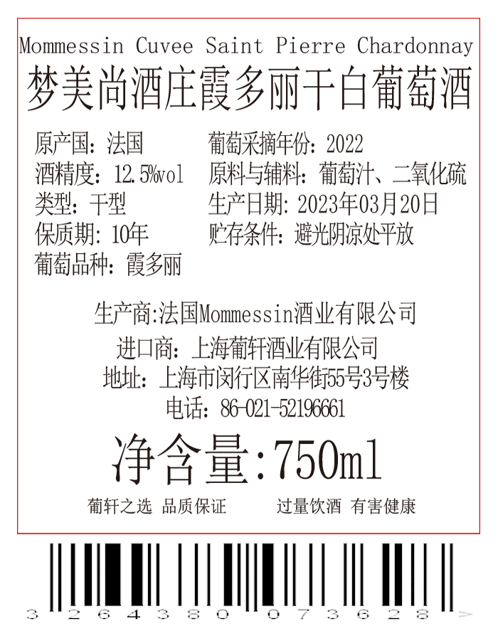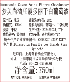 橡木桶陈酿时间 | 葡萄采摘年份 | 2022 | 产品类型 | 干白 | |