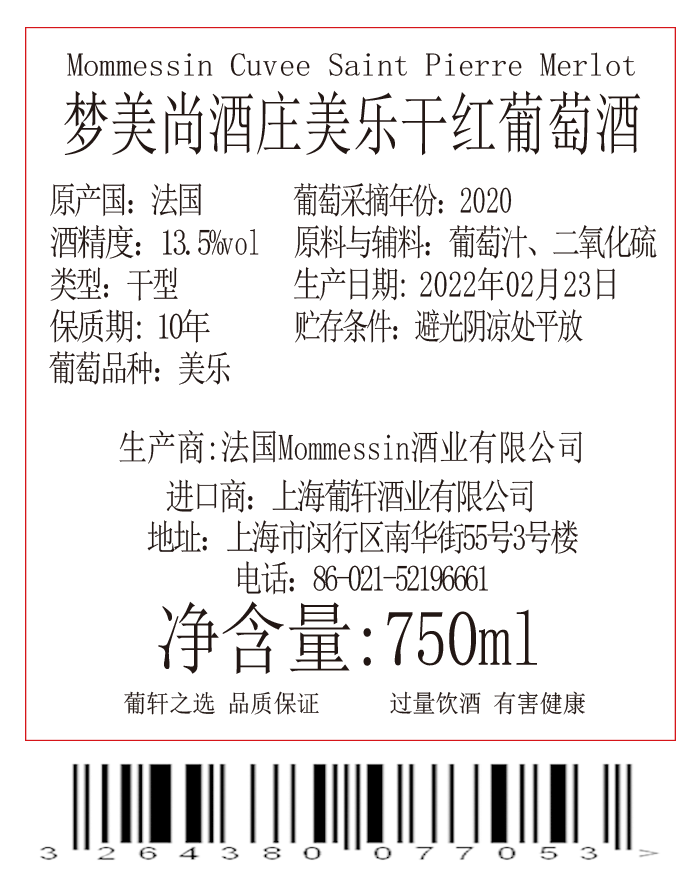 品饮记录 | 紫红色;有蜜饯,灌木与大茴香的香气;顺滑,圆润与非常优雅的单宁伴随着持久的香气。可与好的伴友搭配烤肉,野味与红肉享用。 |