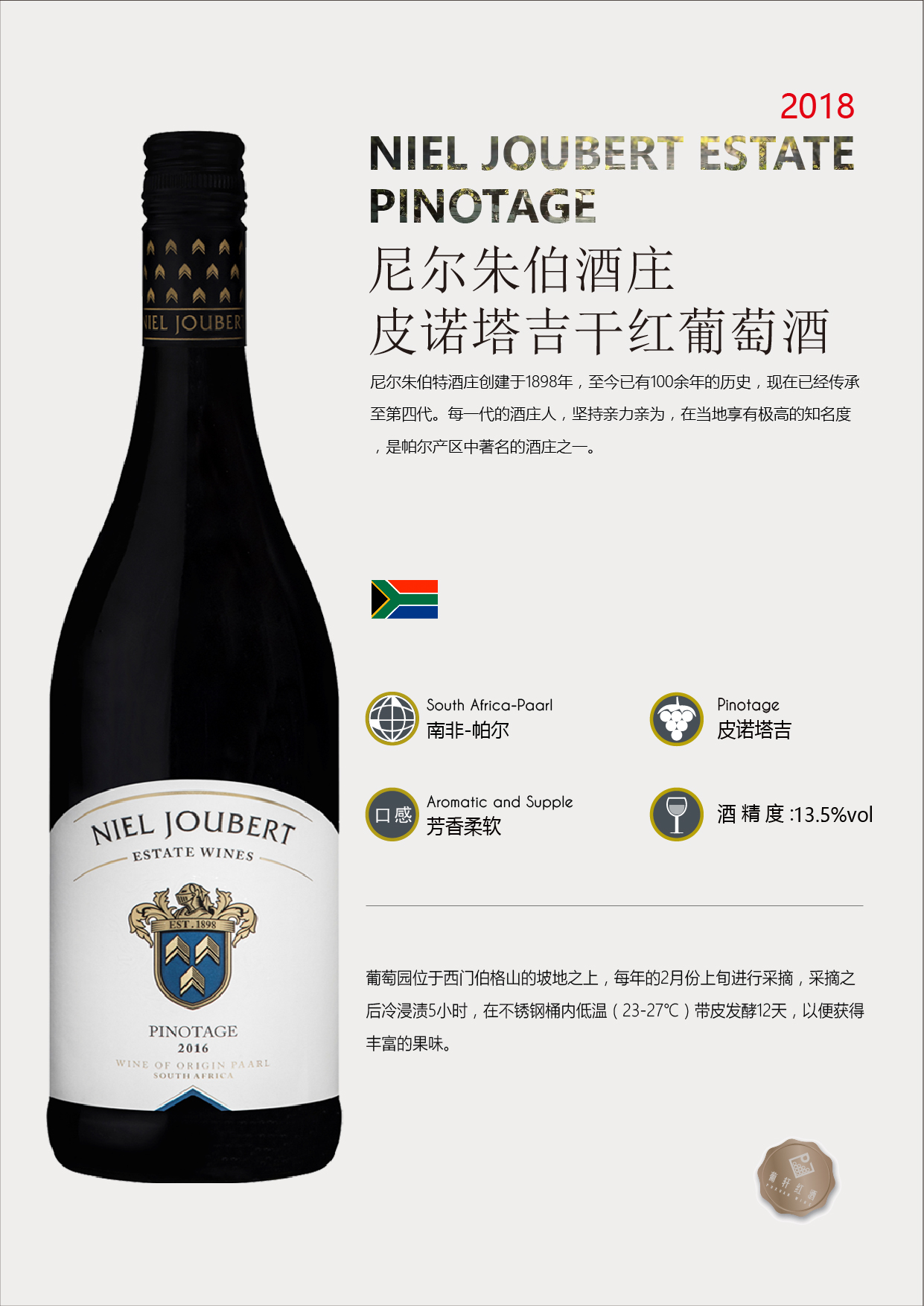 葡萄品种 | 皮诺塔吉Pinotage | 酒精度 | 13.5% | 酒体 | |