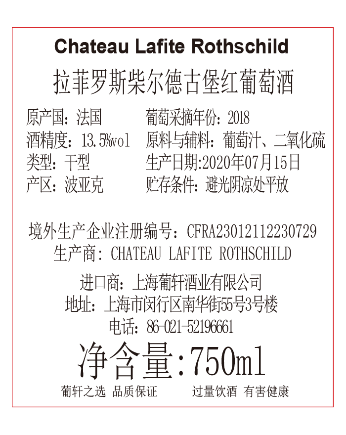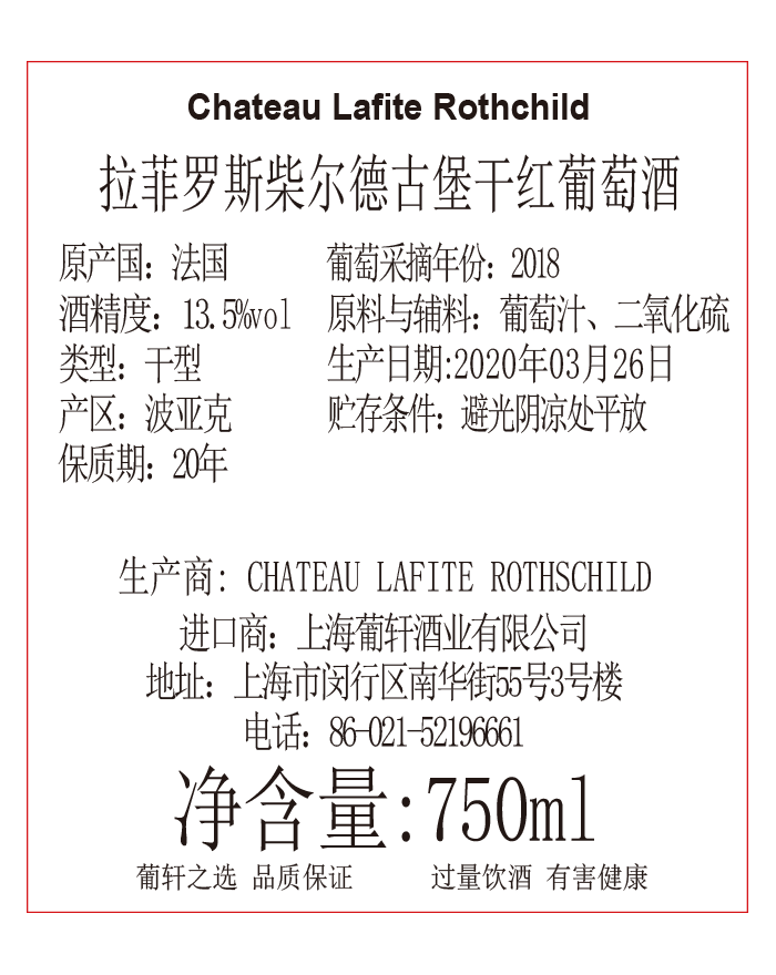 酒体颜色 | 紫红色 | 包装规格 | 6/木箱 | 口感 | 芳香强壮 |
