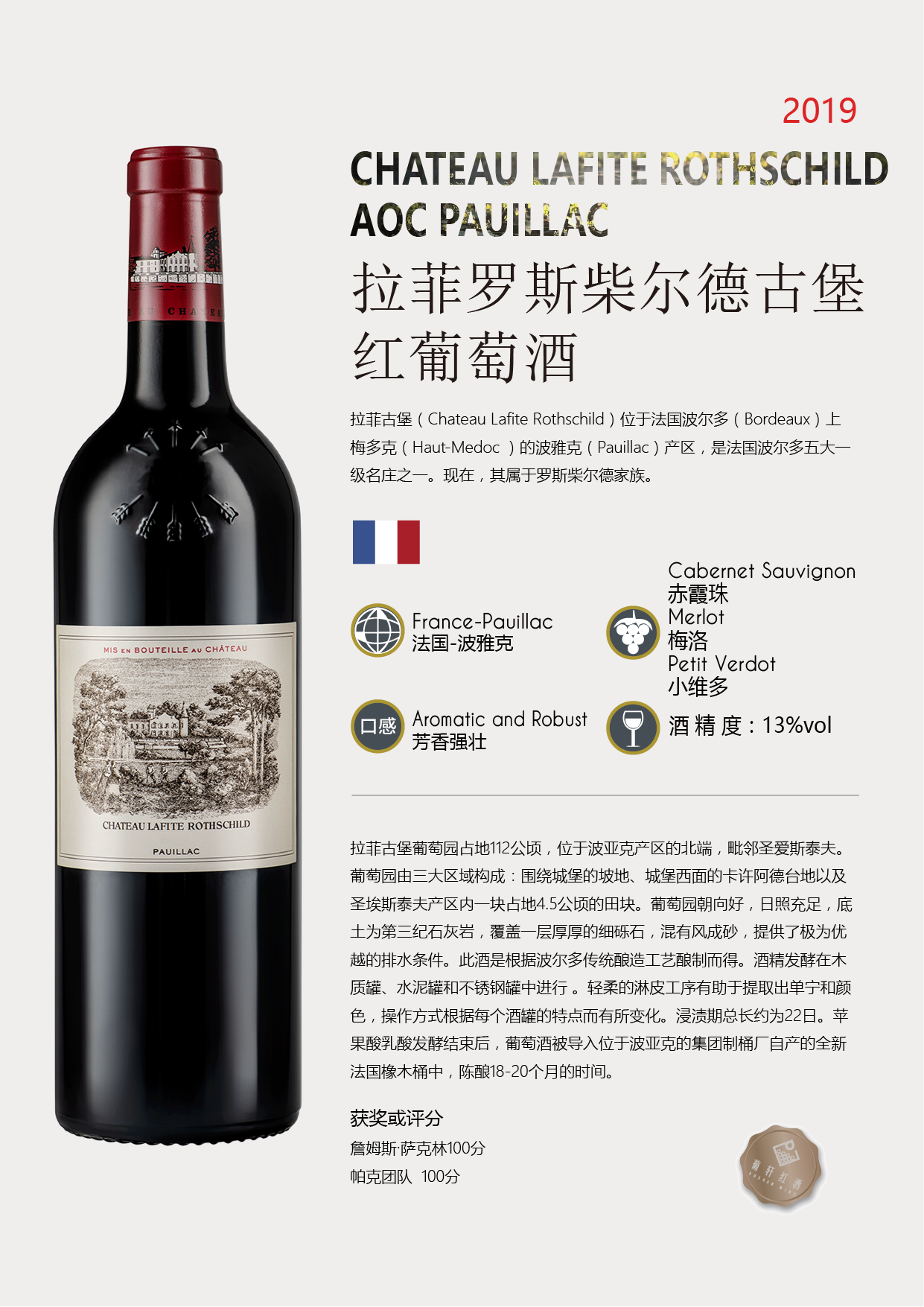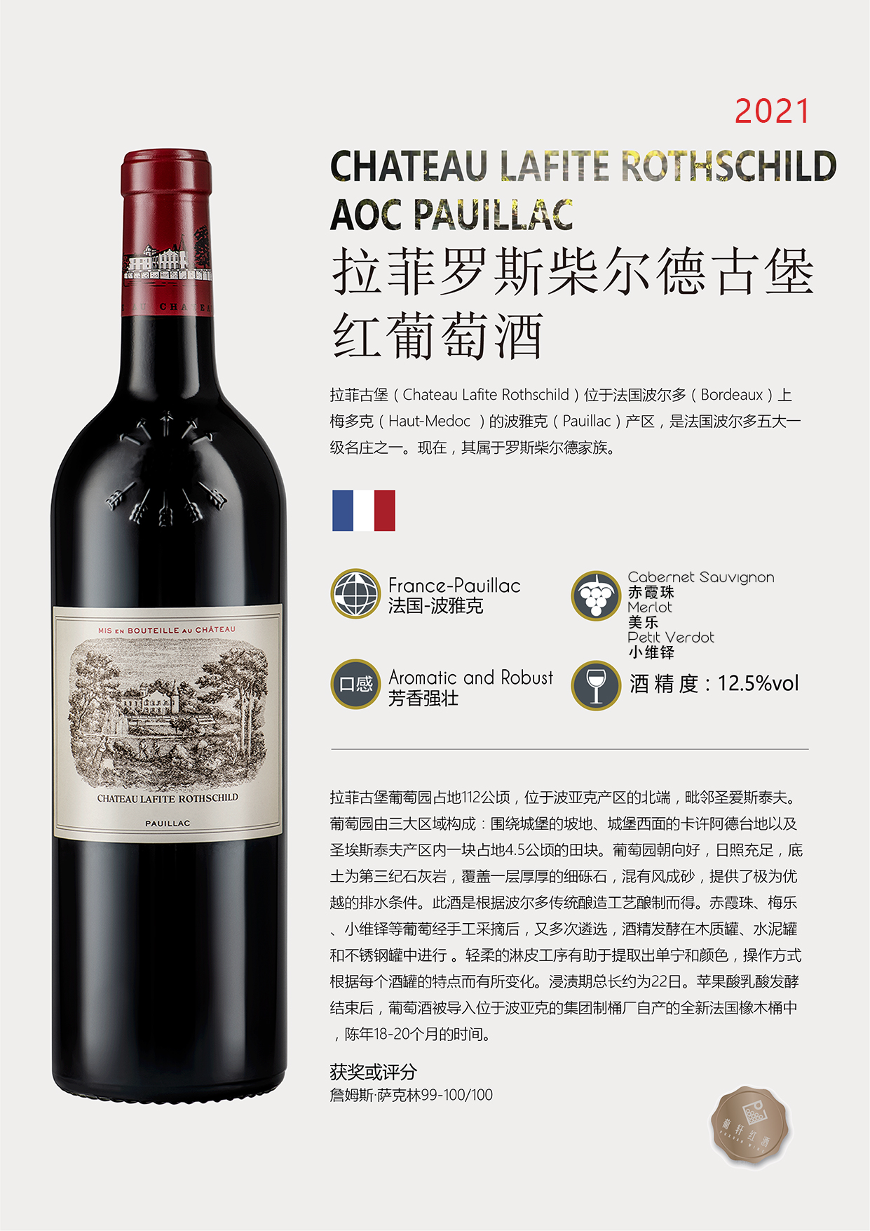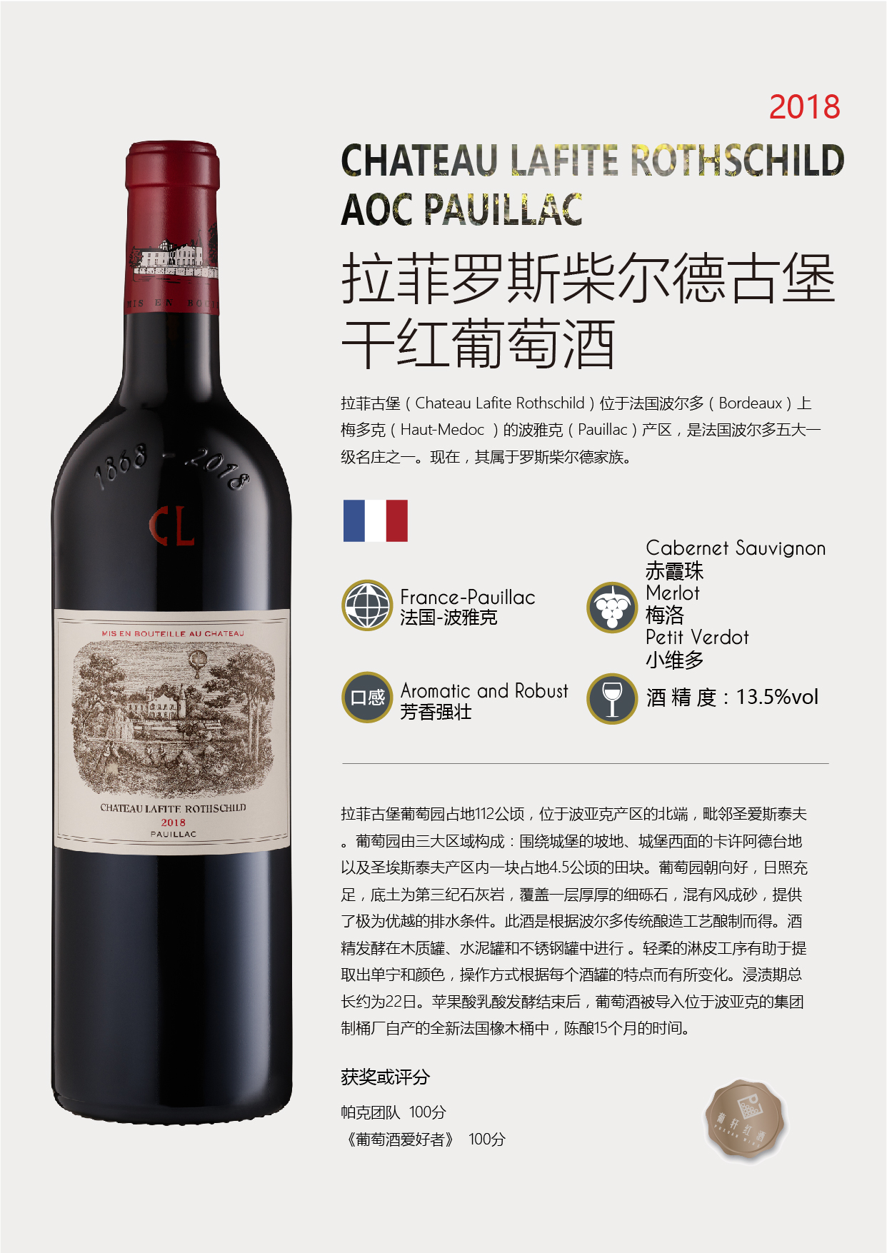 荣誉/评分 | 罗伯特帕克团队100分 《葡萄酒爱好者》100分 | 品尝温度 | 产品规格 | 750ml | |