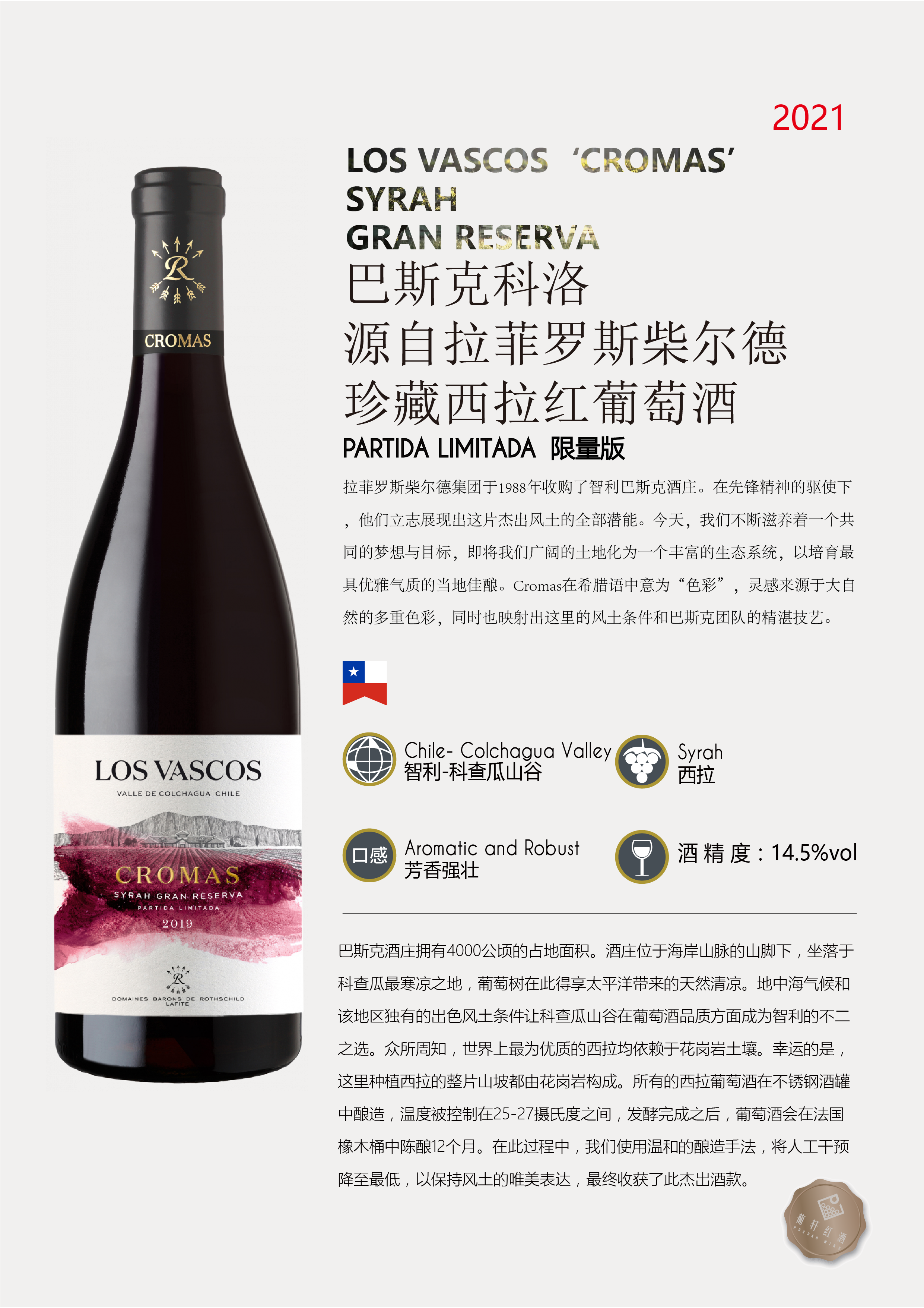 橡木桶陈酿时间 | 葡萄采摘年份 | 2020/2021年 | 产品类型 | 干红葡萄酒 | |