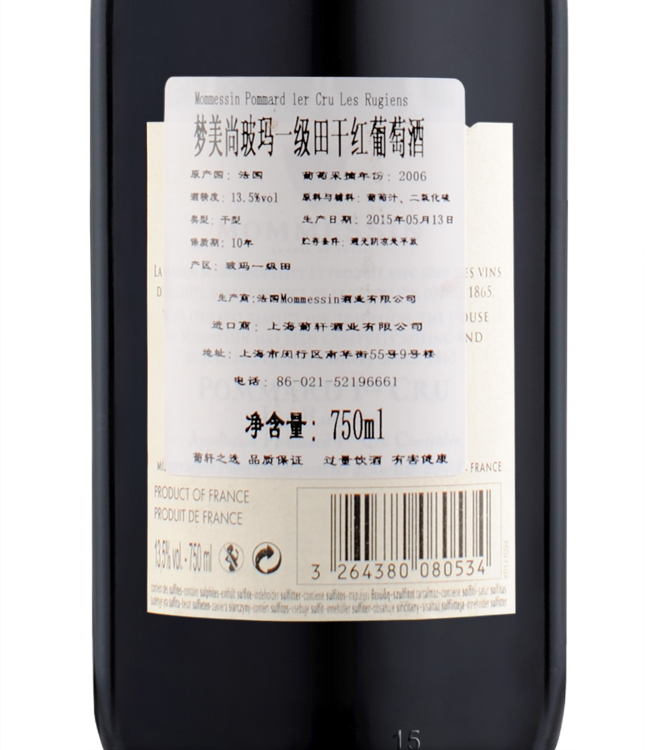 橡木桶陈酿时间 | 葡萄采摘年份 | 2006年 | 产品类型 | 干型红葡萄酒 | |