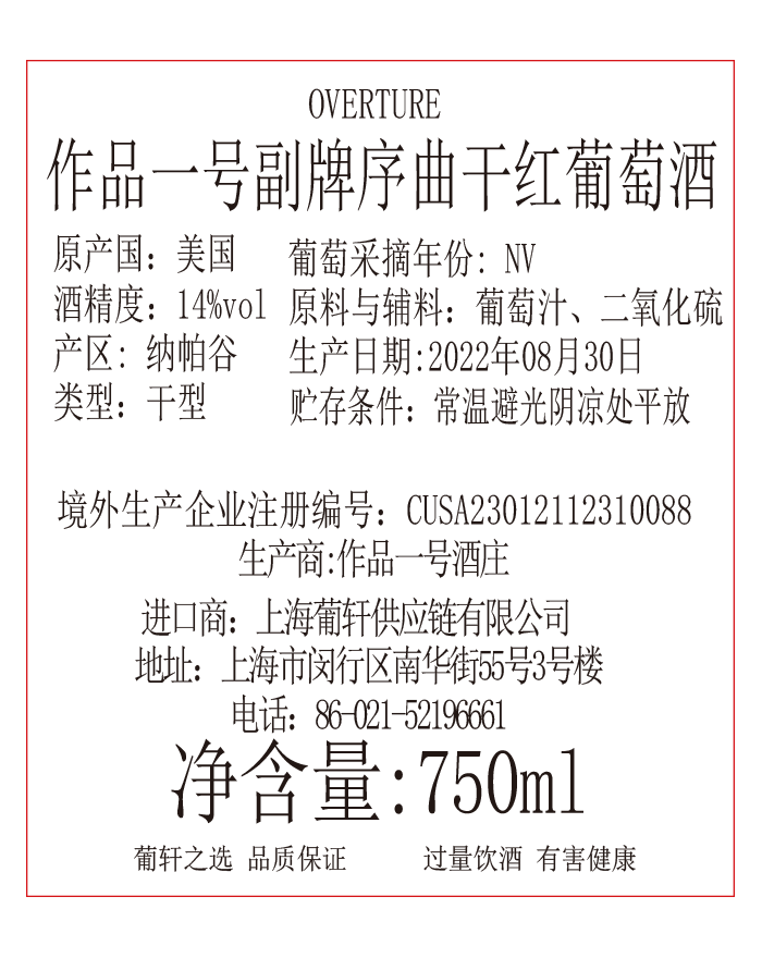 葡萄品种 | 赤霞珠、梅洛、品丽珠、马尔贝克、小维铎 | 酒精度 | 14% | 酒体 | 丰满 |