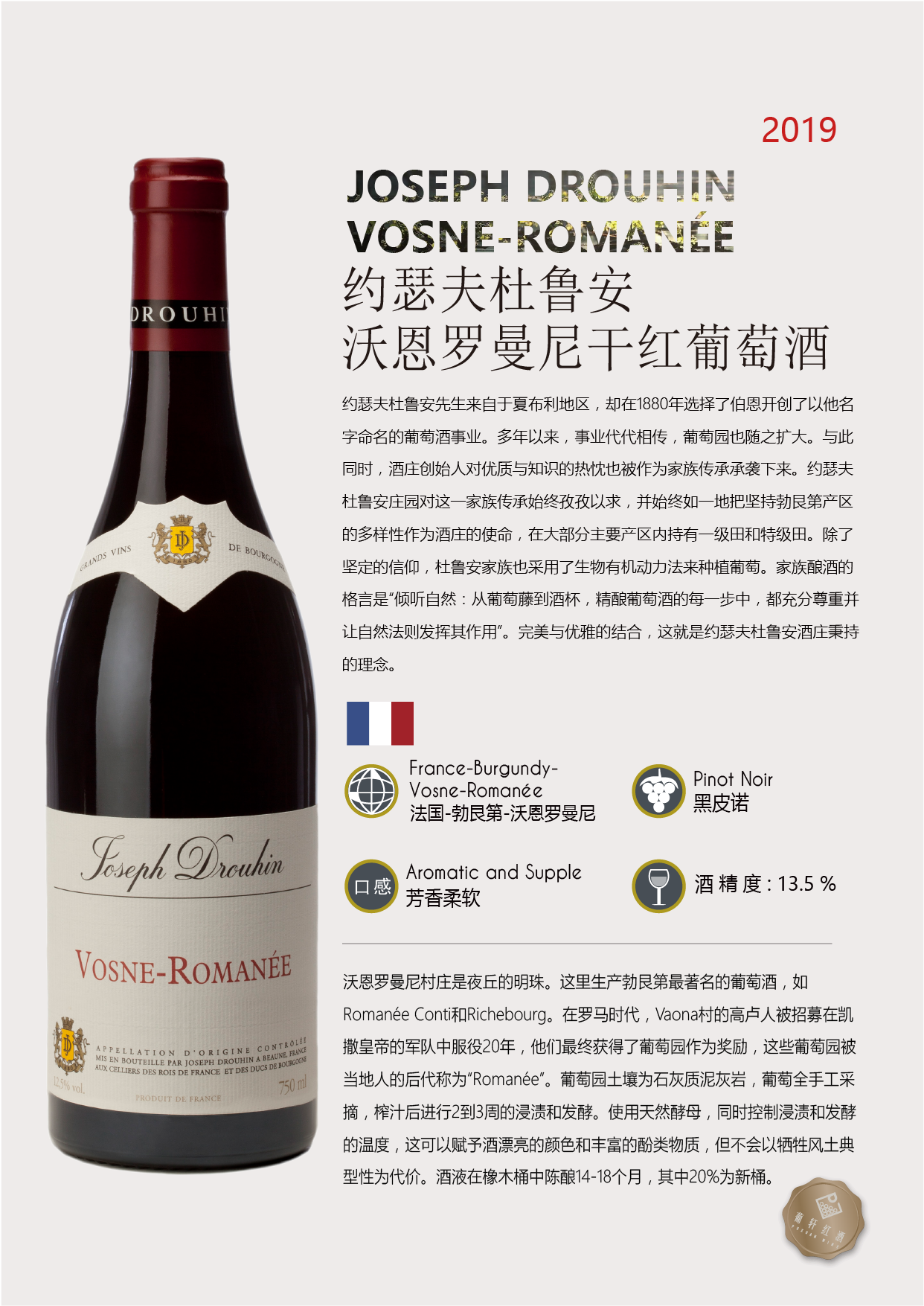 品饮记录 | 极致的优雅!颜色非常漂亮,浓郁而明亮。我们被各种各样的香气所震撼:覆盆子、樱桃,豆蔻、雪松,然后是松露的香气,令人惊叹地结合在一起。单宁和酸度完美平衡,酒体饱满,余味强劲而悠长。非常和谐的丰富性,是一款伟大的勃艮第。 |