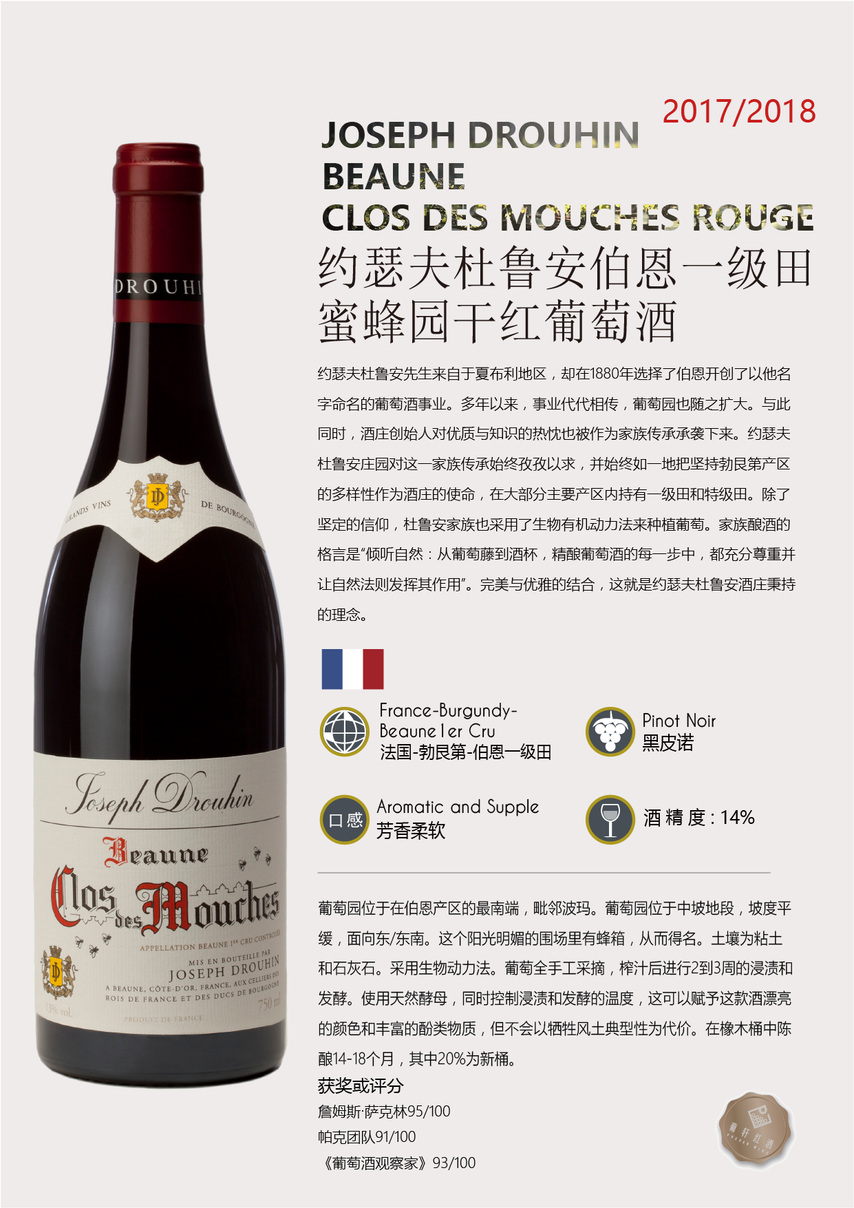 品饮记录 | Mouche是“Mouche à miel”的缩写,即小蜜蜂的意思。鲜亮的红宝石色泽,开瓶稍作醒酒后便打开了,满满新鲜的红色水果香气,还有不少玫瑰花和夏日薄荷的清凉感,迷人的酸度,精致清爽又具有层次感,中等的酒体,单宁也非常精细绵软,是一款讨喜的黑皮诺。 |