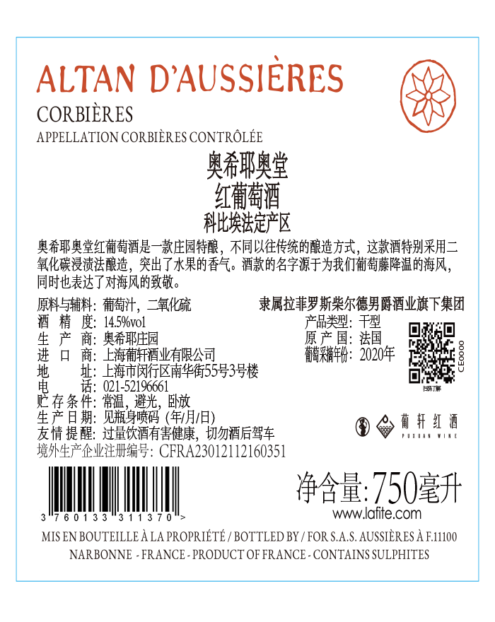 卖点 | 出自拉菲集团 | 级别 | AOC | 酸度 | 高 |