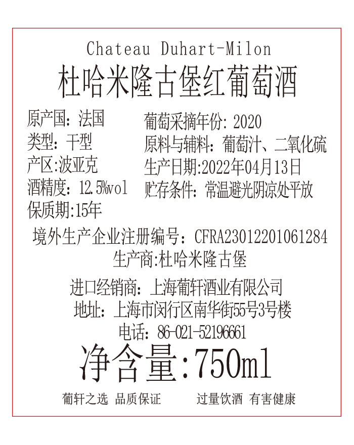 拉菲罗斯柴尔德珍宝红葡萄酒(小拉菲)