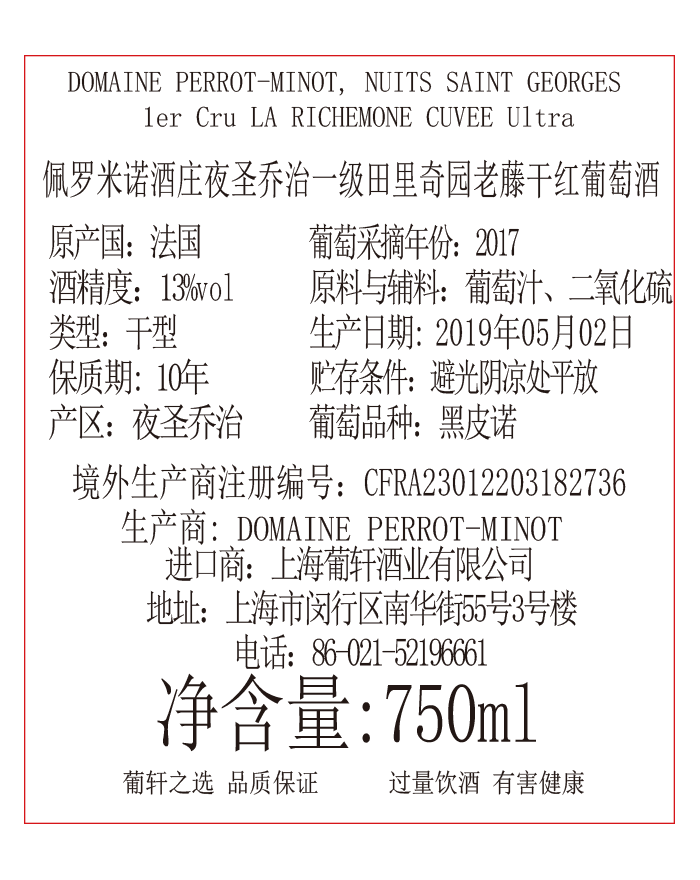 田干红葡萄酒DOMAINE PERROT-MINOT GRIOTTE-CHAMBERTIN GRAND CRU