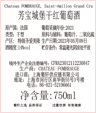 酒体颜色 | 宝石红色 | 包装规格 | 6/木箱 | 口感 | 芳香强壮 |