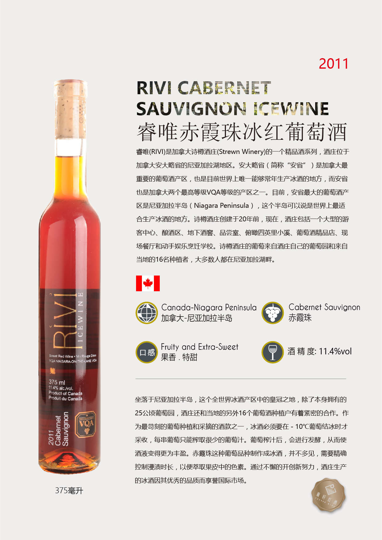 橡木桶陈酿时间 | 葡萄采摘年份 | 2011年 | 产品类型 | 甜酒 | |