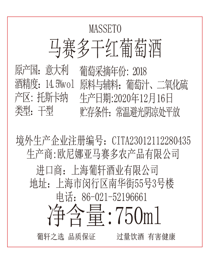 酒体颜色 | 红色 | 包装规格 | 6/纸箱 | 口感 | 芳香,强壮 |