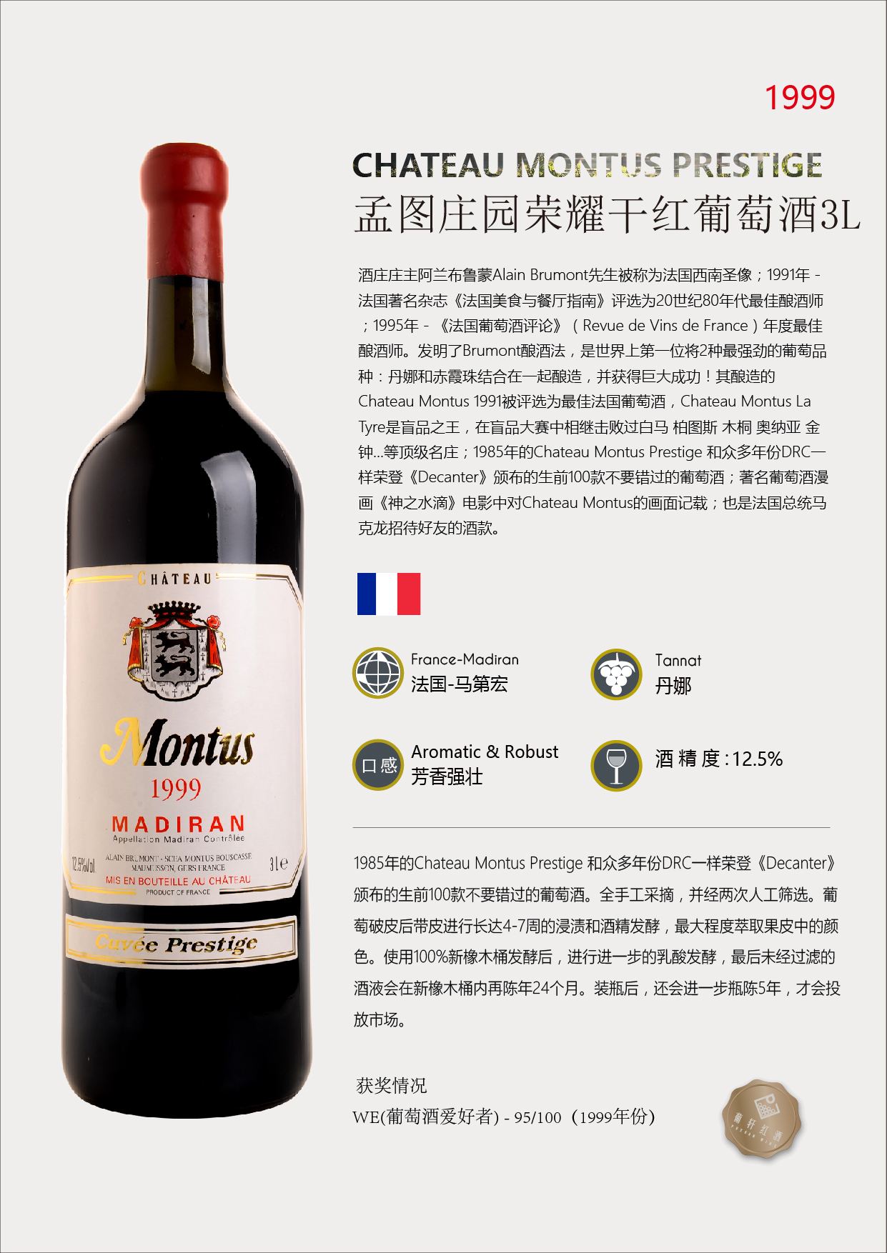 品饮记录 | 此酒呈红宝石色,具有非同寻常的特点,柔和又复杂多变。烟熏和可可的香气非常显著。是一款酒体丰满可长时间窖藏的高品质葡萄酒。 |