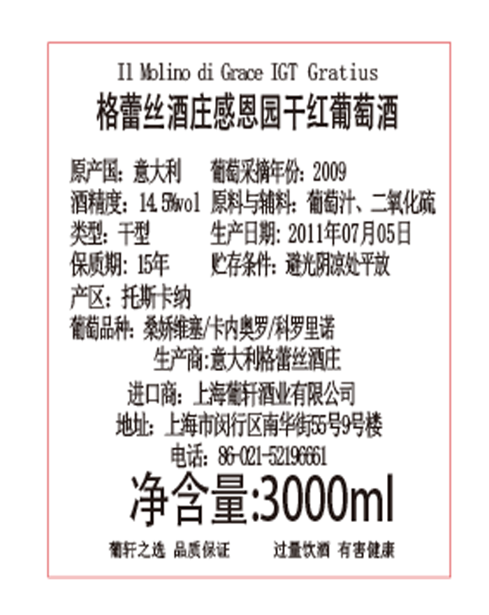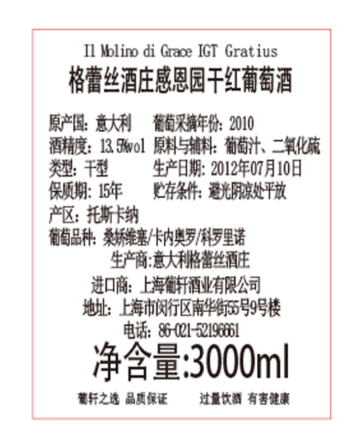 橡木桶陈酿时间 | 葡萄采摘年份 | 2009/20102011年 | 产品类型 | ||
