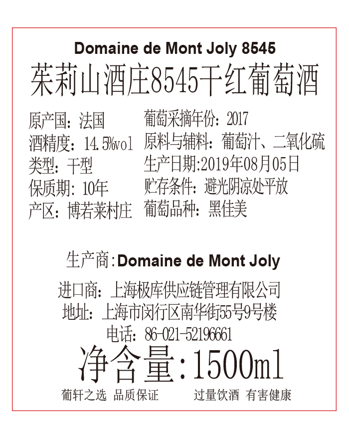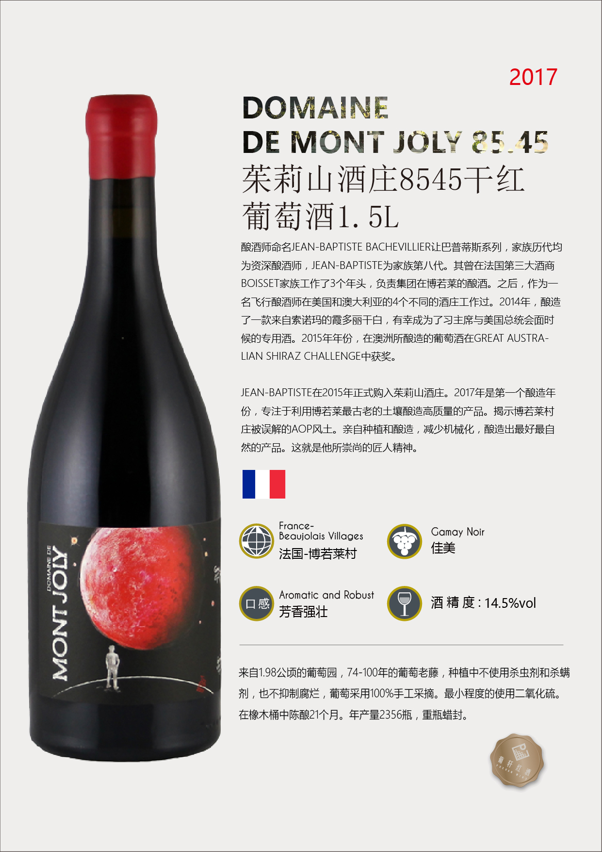 葡萄品种 | Gamay Noir 佳美 | 酒精度 | 14.5%/14.5%/14.5% | 酒体 | 强壮 |