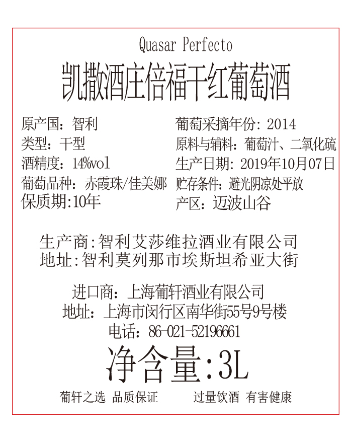 荣誉/评分 | 品尝温度 | 16-18℃ | 产品规格 | 3000ml | |