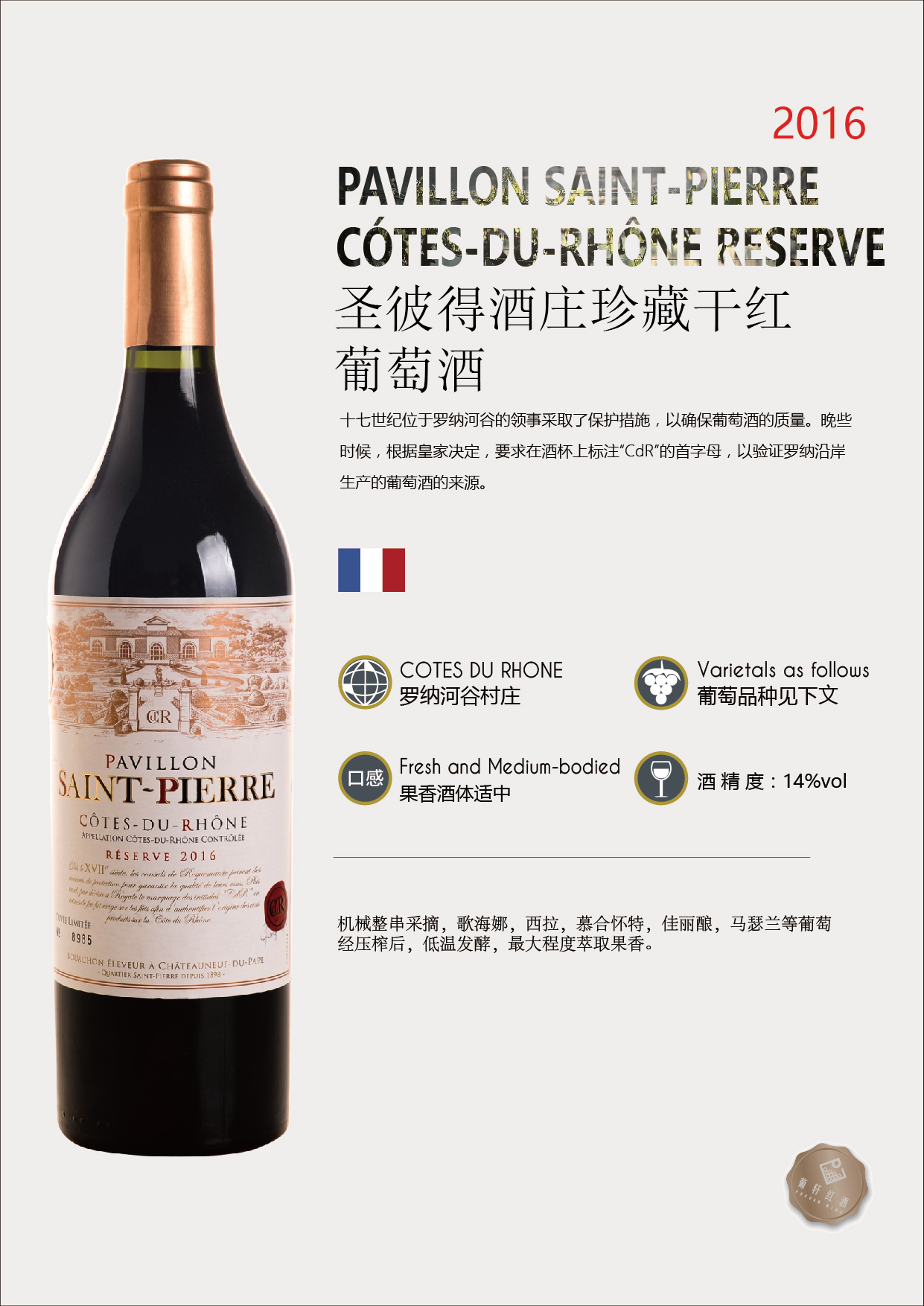 品饮记录 | 颜色:红宝石色 香气:黑色水果香气,黑醋栗,以及香料,黑胡椒等香气 口感:结构完整,层次分明,有非常好的平衡度和悠长的回味 |
