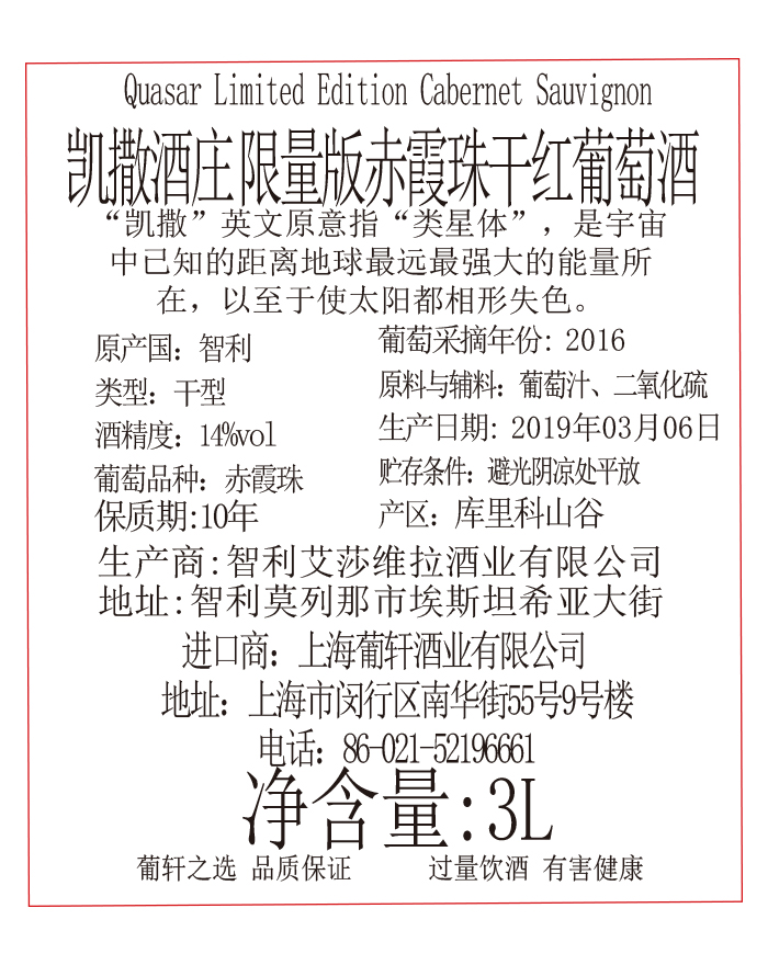 荣誉/评分 | 品尝温度 | 16-18℃ | 产品规格 | 3000ml | |