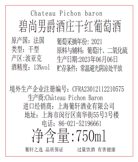 酒体颜色 | 包装规格 | 6支/木箱 | 口感 | 圆润柔和 | |