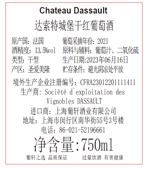 达索特城堡干红葡萄酒