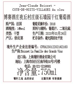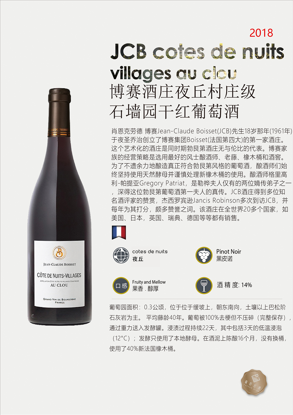 博赛酒庄夜丘村庄级 石墙园干红葡萄酒