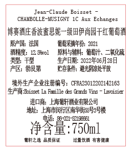 产地: 香波-蜜思妮Chambolle-Musigny