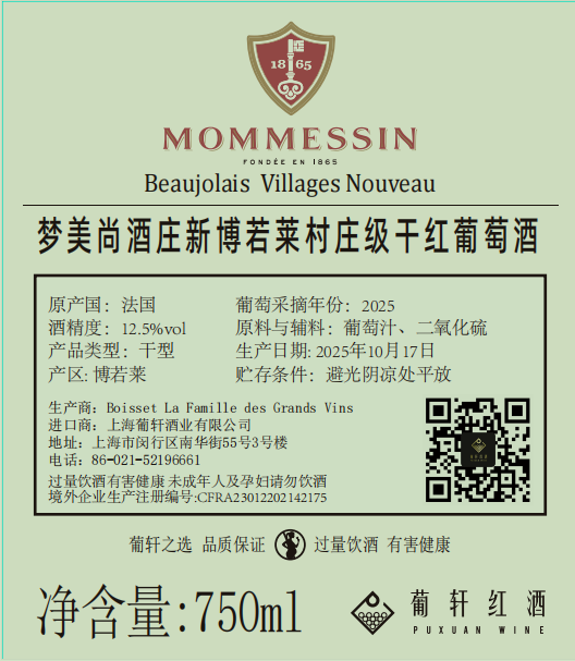 梦美尚酒庄新博若莱干红葡萄酒